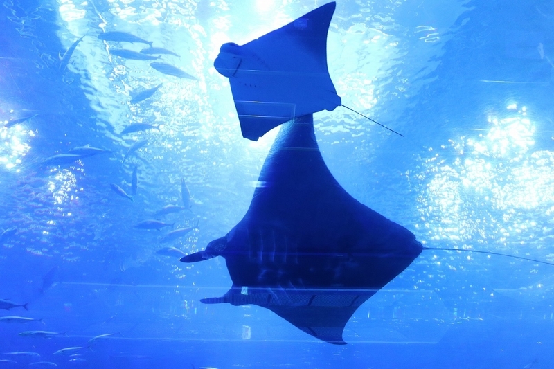 真上から見ると、正面から見ていたとき以上にジンベエとマンタの大きさが実感できます。